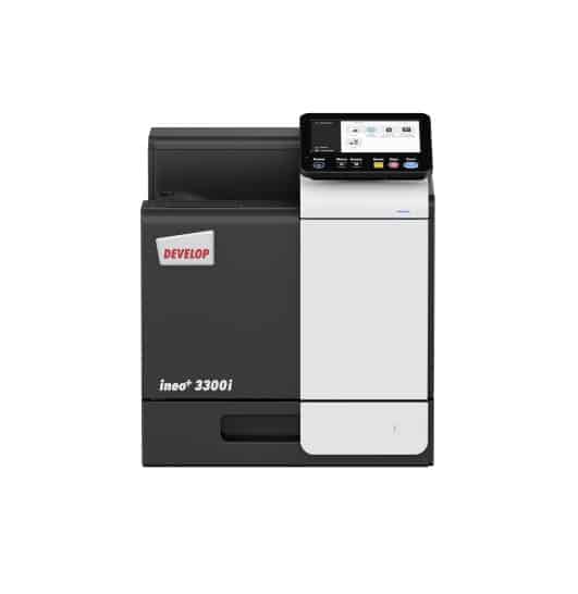 Model Develop ineo+ 3300i to kolorowa drukarka sieciowa A4, oferująca doskonałą jakość wydruku, automatyczny dupleks i kompaktowe wymiary.
